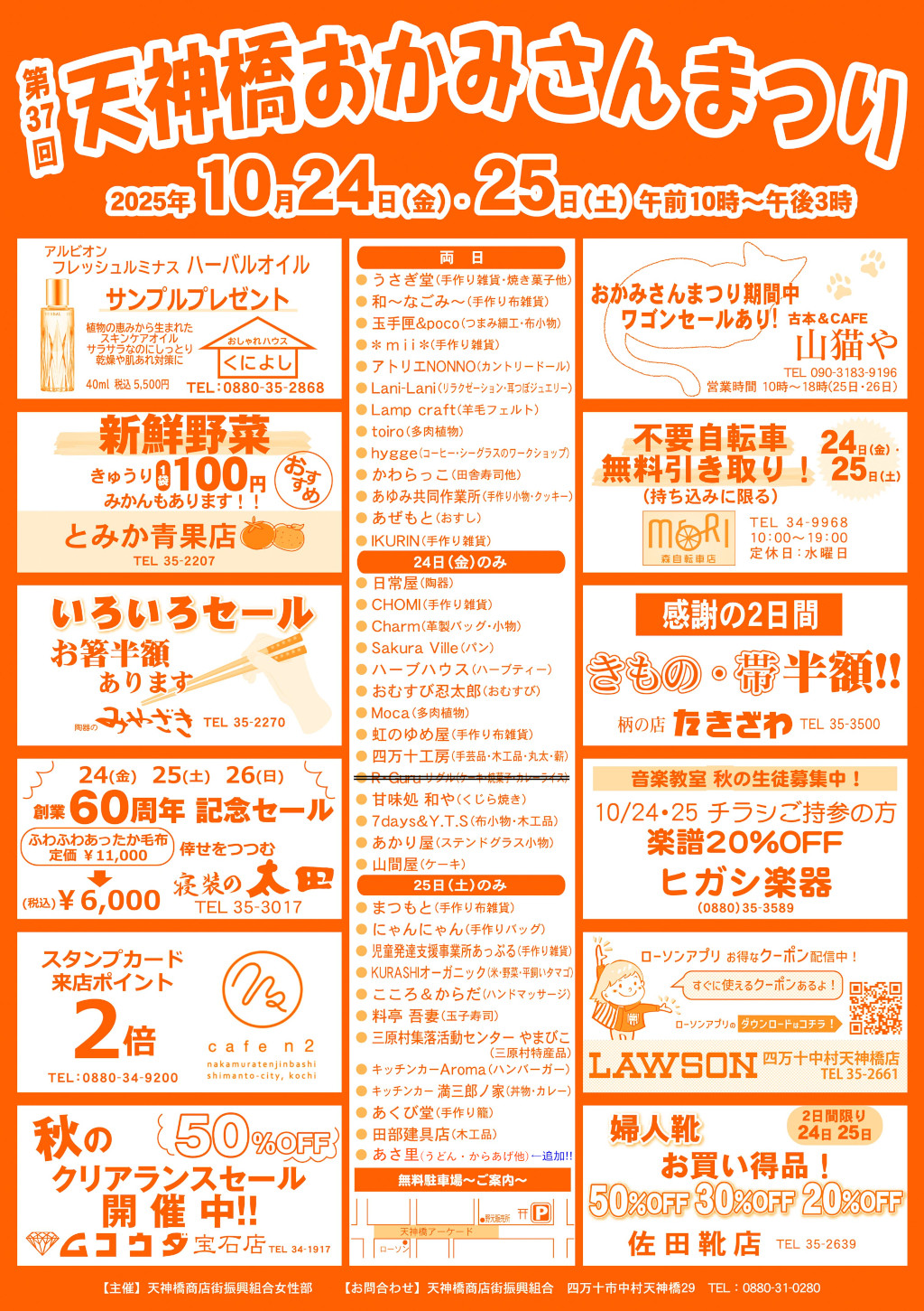 【お問合わせ】 天神橋商店街振興組合 四万十市中村天神橋29 TEL: 0880-31-0280