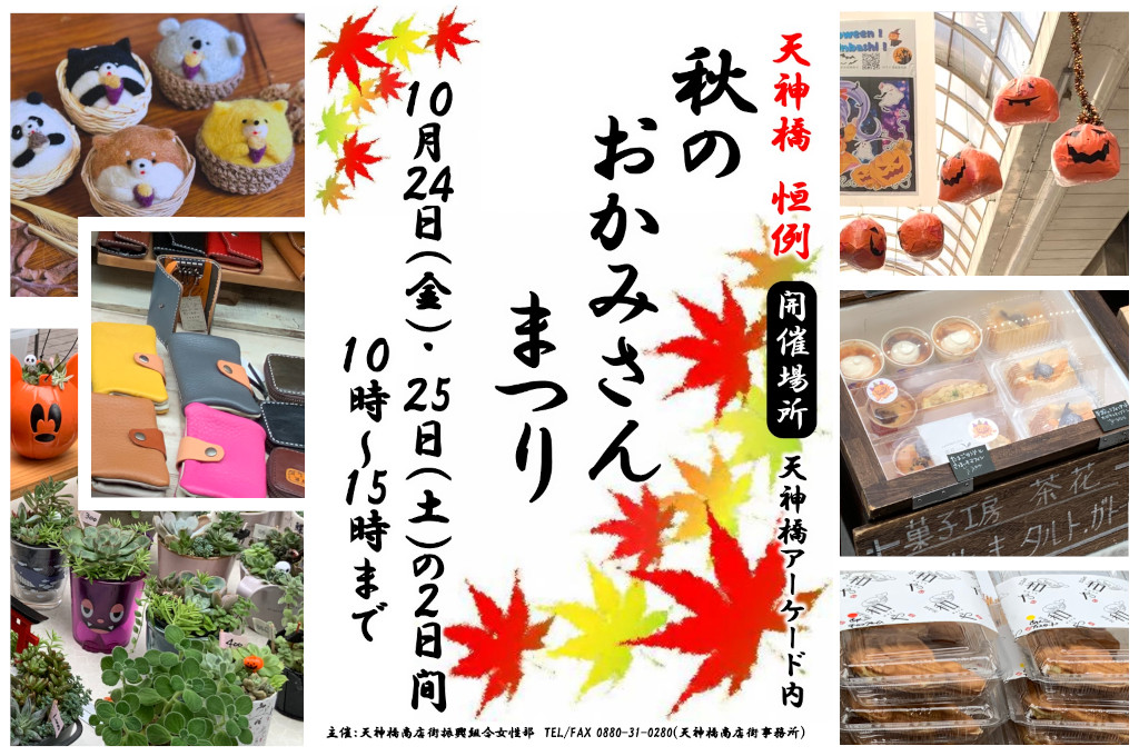 10月24日(金)・25日(土)10:00~15:00 天神橋おかみさんまつり開催します♪